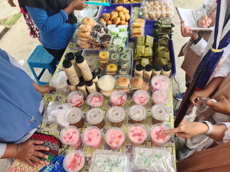 Selain itu, cilok, gogos, sosis, kue mangkok, panada, kerupuk, moci, roll cake, lapis kuning, kue lumpur, siomay.