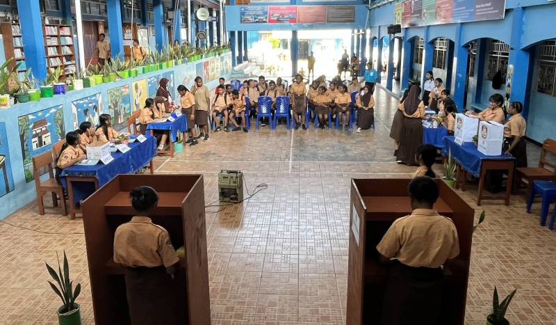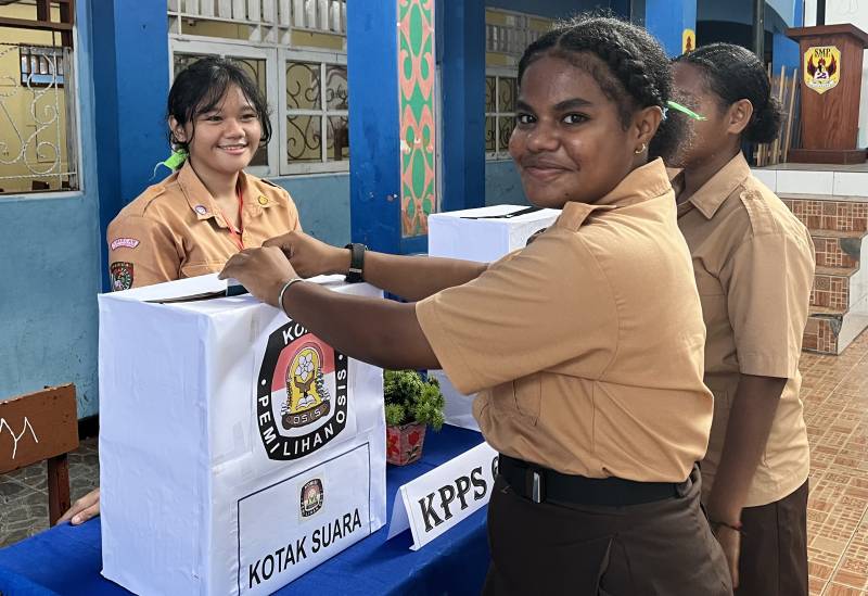 Salah satunya proses pemilihan ketua dan wakil ketua OSIS (Organisasi Siswa Intra Sekolah) periode 2024-2025 di halaman SMP Negeri 2 Jayapura, Kota Jayapura, Papua, Jumat (27/9/2024), yang menggunakan sistem pemilihan umum (pemilu).