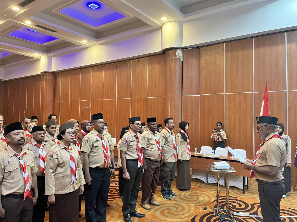 Kakcwarcab Pramuka Kota Jayaputa Matias B. Mano melantik pengurus Kwartir Ranting. (TIFAPOS/Ramah) TIFAPOS.id – Gerakan Pramuka Kwartir Cabang (Kwarcab) Kota Jayapura, Papua, menggelar rapat ker...